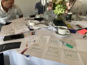 With the clock ticking, the teams then put their art and craft skills to the test, cutting and sticking together two prototype solutions on paper which is always refreshing and embraces a more low-fidelity, tactile type method for ideation – getting away from the screen.